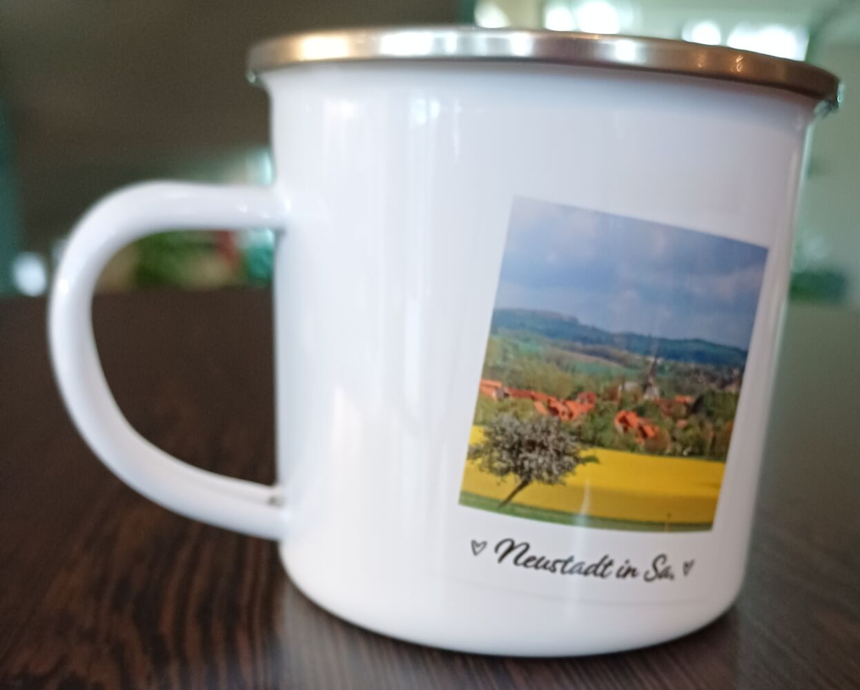 Emaillietasse "3 Polaroidfotos Neustadt"
