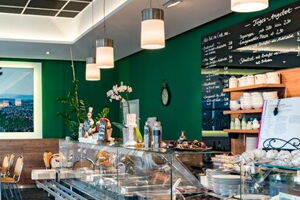 bis zu 70 Sitzplätze zum Wohlfühlen, frische Speisen und Backwaren.