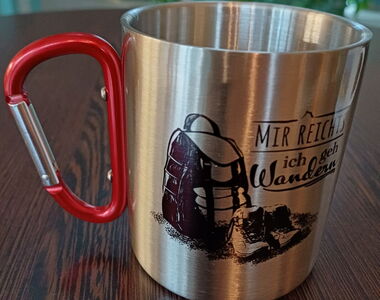 Edelstahltasse Karabiner" Mir reichts-ich geh wandern"